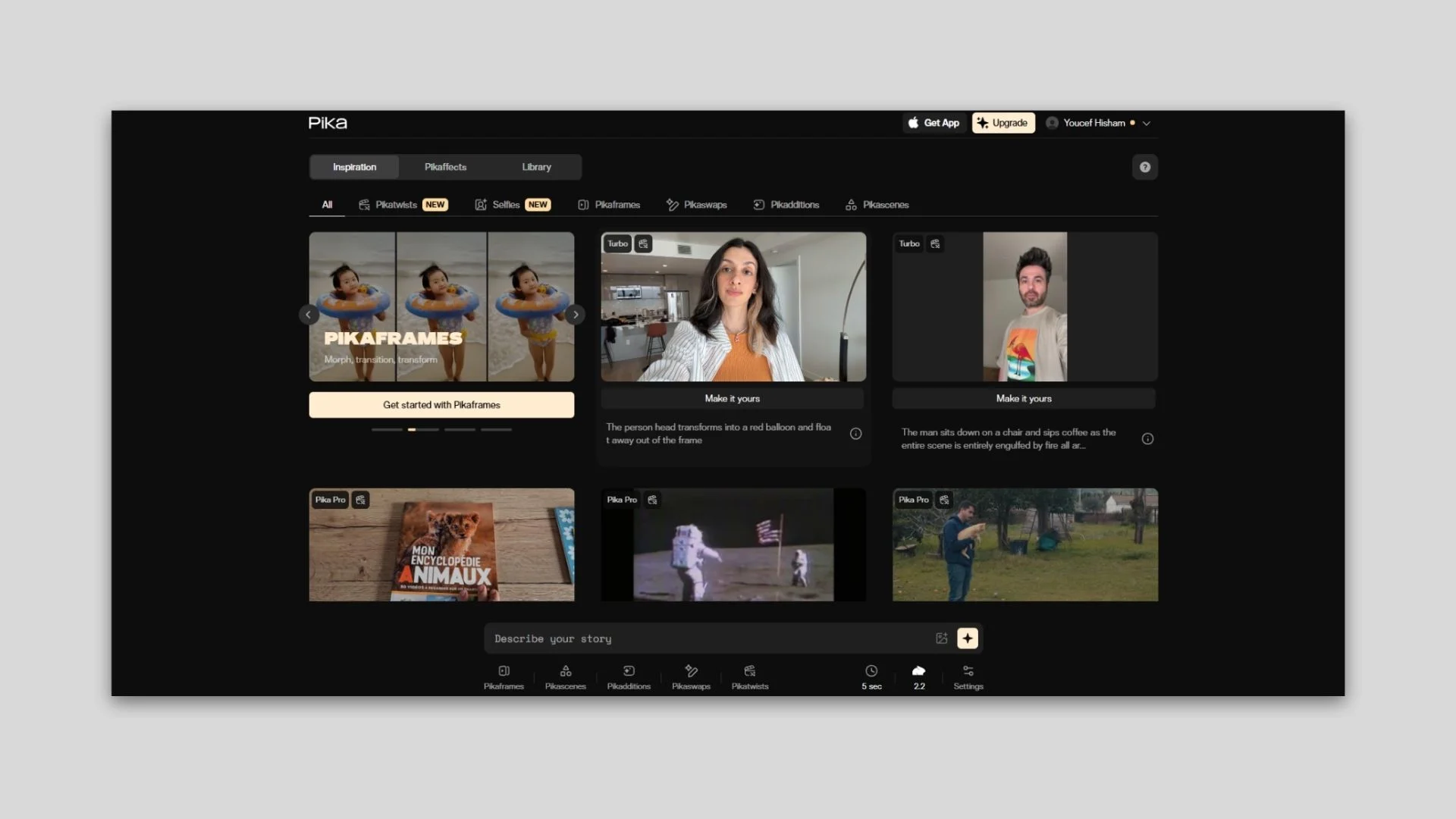 The best part? It’s really easy to use. All you have to do is type in your idea, and Pika does the rest. You can even recreate popular videos like those “meeting my younger self” TikToks in just a few clicks, all thanks to its ready-to-use templates. And if something looks off, you don’t have to start over. Pika has a Modify Region tool that lets you change any part of the video. It’s fast, simple, and really helpful.