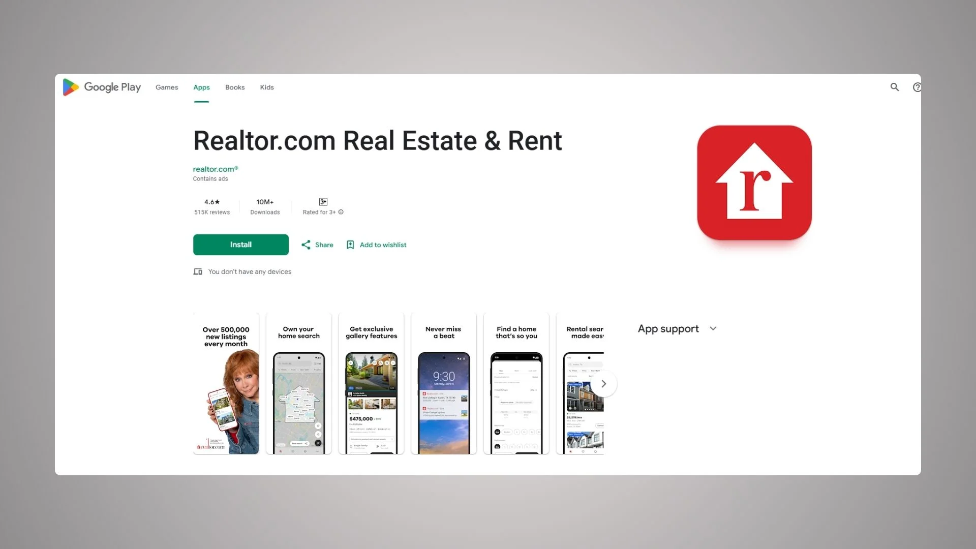 • App Rating: Realtor.com has an average rating of 4.7 stars on the Apple App Store and 4.5 stars on Google Play and is praised for its accuracy and ease of use.
