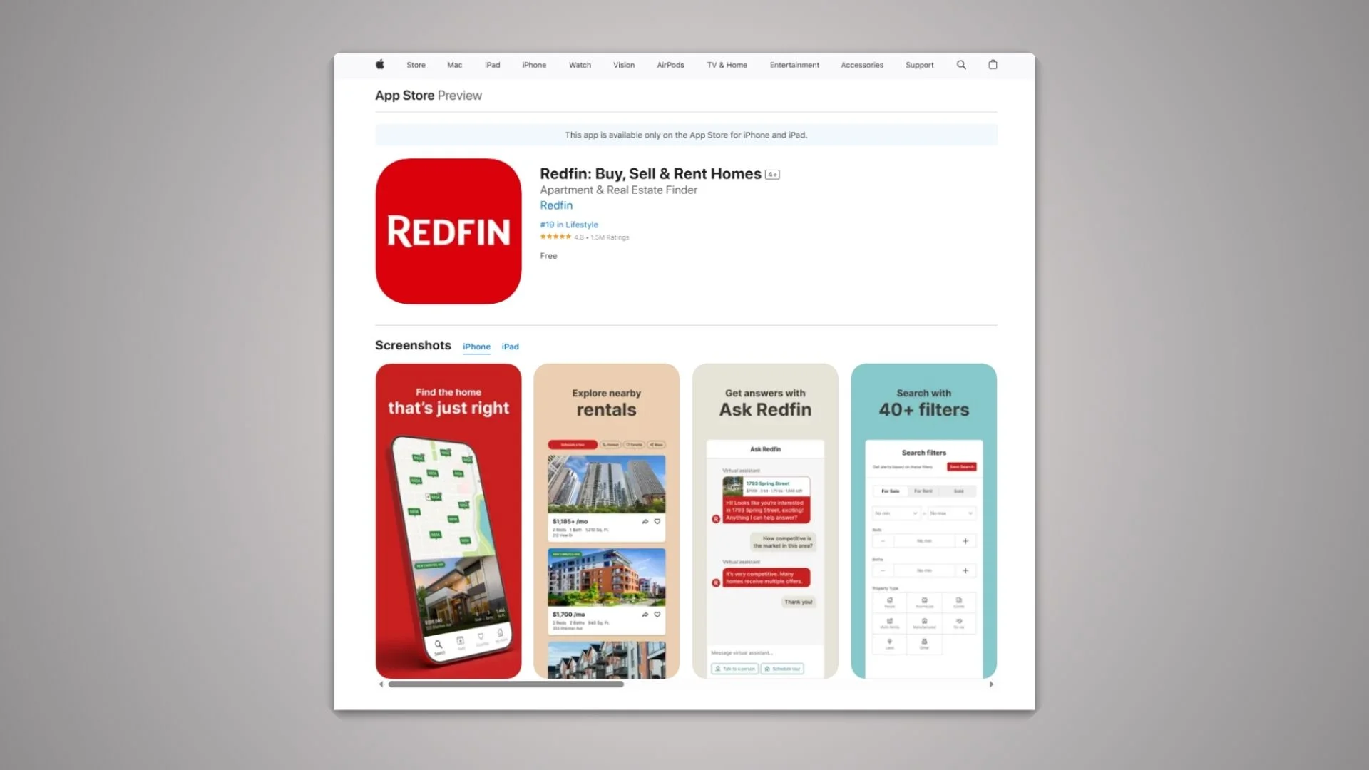 • App Rating: Redfin has an average rating of 4.8 stars on the Apple App Store and 4.6 stars on Google Play, making it one of the highest-rated real estate apps.