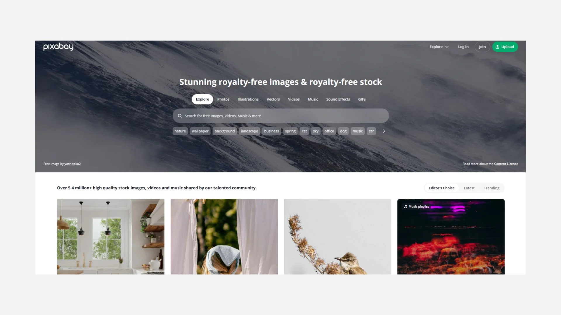 - Best For: Free stock photos, videos, vectors, illustrations, and music for content creators, businesses, websites and presentations