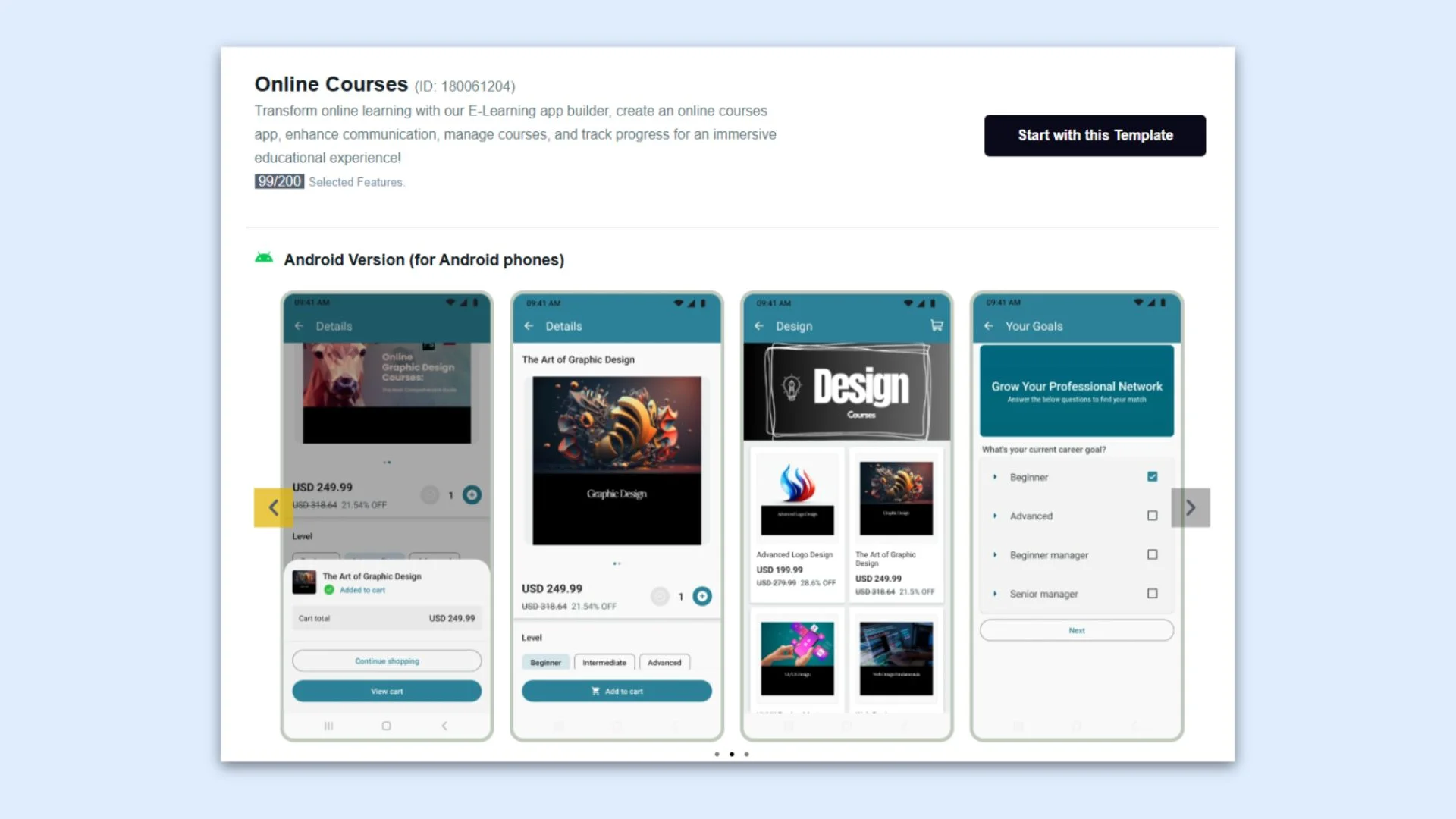 You can build a fully featured native e-learning app without writing a single line of code. This can perfectly fit schools, teachers, tutors, and educational startups, as well as large educational organizations.