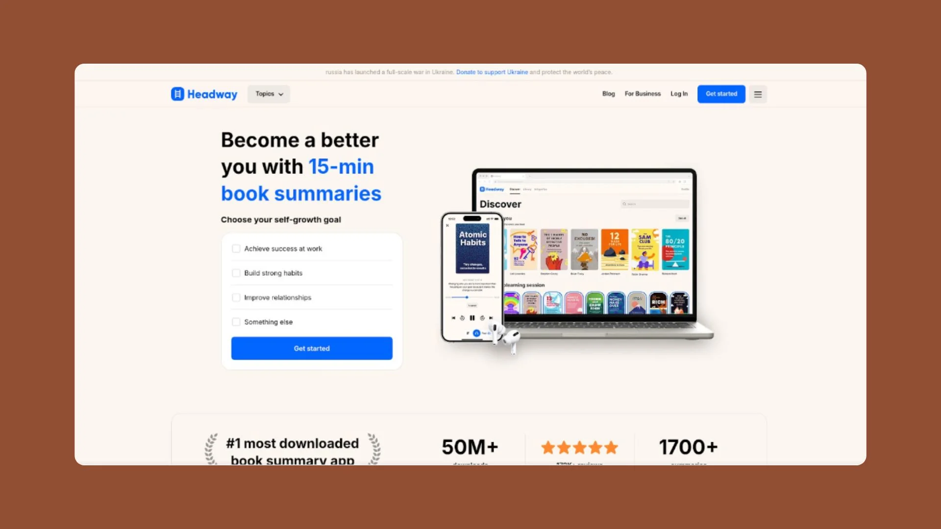 Headway is perfect for young learners, busy professionals, and anyone who wants to discover powerful ideas from popular nonfiction books but doesn’t have a lot of time. If you want to build new habits, become more productive, or just keep growing as a person, the Headway Book Summary service is designed with your goals in mind. With easy access on any device—phone, tablet, or computer—Headway fits into any lifestyle, making learning something you can do every day.