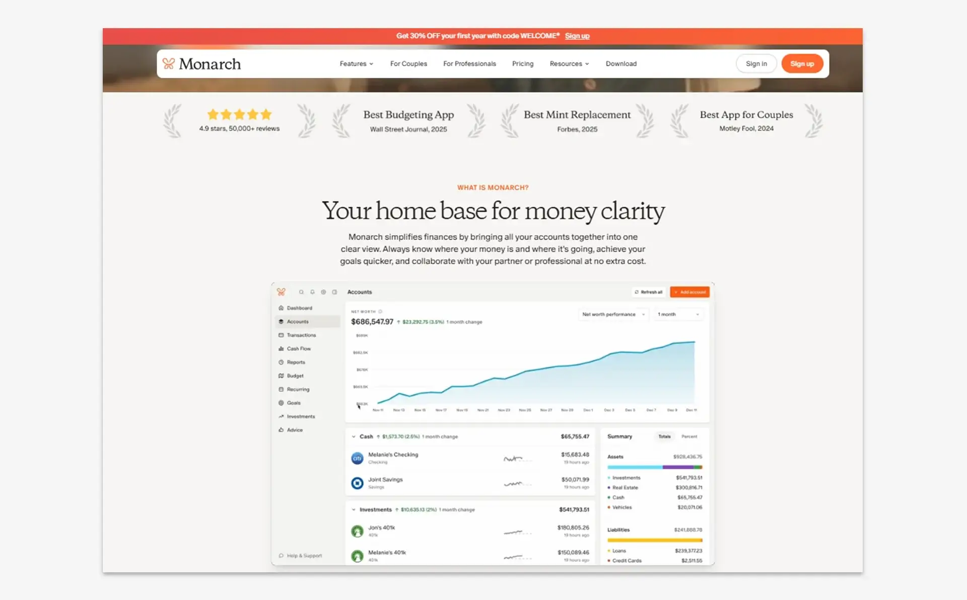 2. Monarch: The Flexible Money Tracking Apps In 2025