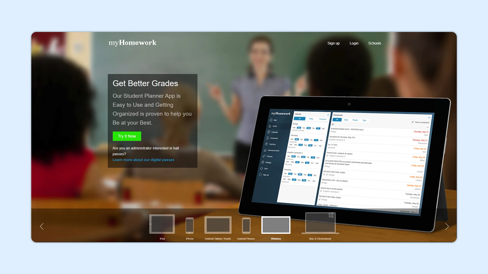 - Key Features: Offline access, Tracking tools (classes, tests, assignments), Calendar integration, Multi-device syncing, Simple interface, Reminders, Parent notifications