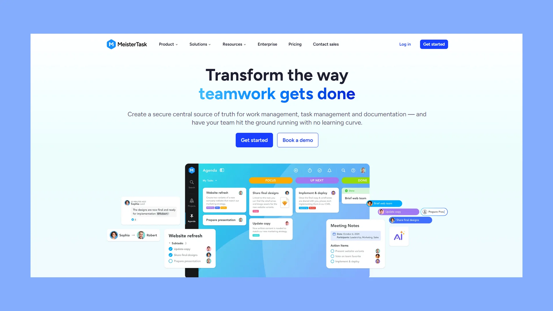 - Key features: Workflow automation, Focus timer, Ready-made guides for projects and tasks, AI tool, Kanban boards, Team collaboration tools (comments, file attachments, mentions), Custom checklists, Work graphs, Enterprise-grad security